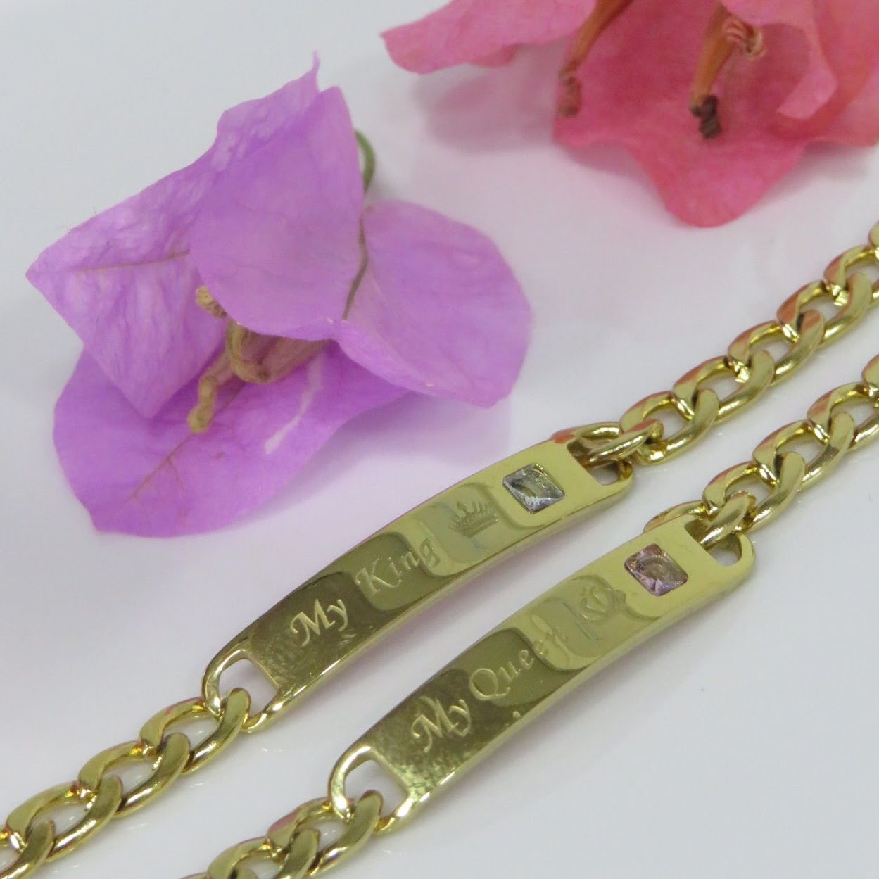 PULSERA PAREJA QUEEN KING DORADA ACERO